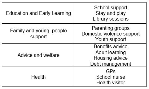 Based on the needs of each family, staff will coordinate the support of the appropriate services. Where appropriate TAF (Team Around the Family) meetings are arranged to monitor the work of all the agenices involved.
